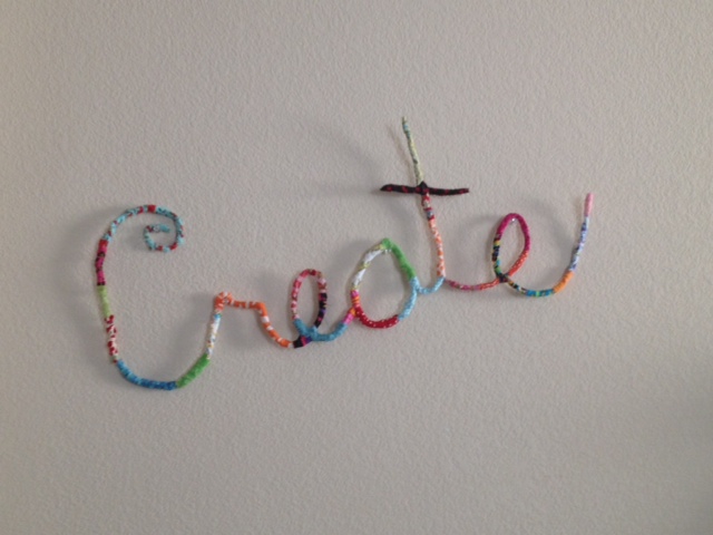 i doubled the pipe cleaners and made the word C R E A T E. doubling them made it a little more sturdy. all you do is wrap the cleaners around each other.